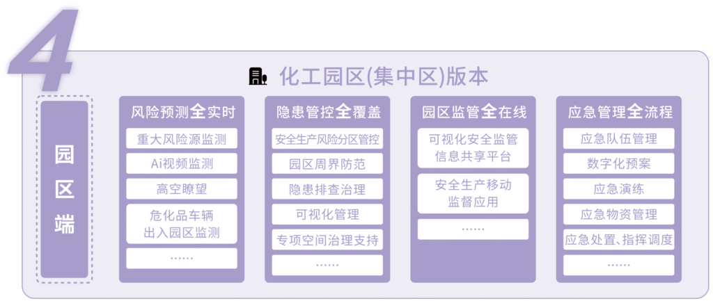 以化工企业为监测点、园区为巡查单元,打通“监测 – 预警 – 监管 – 指挥”全流程